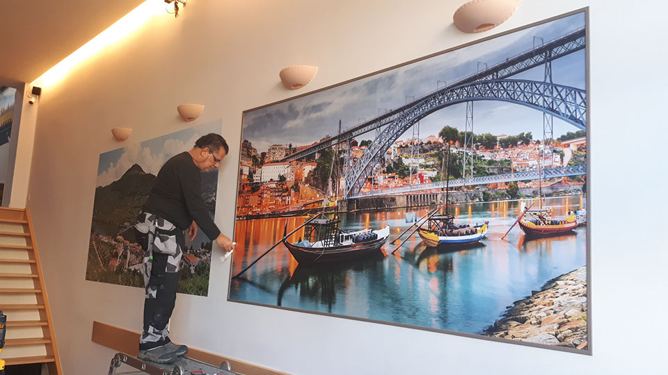 Self-adhesive sticker printed and cut lettering for shop window, wall, car, floor, metal, wood, sandblasted and frosted adhesive film... A wide range of media to choose from: Flyer, restaurant menu, leaflet, poster, catalog and business card made of premium paper; labels, exhibitors, cardboard, acrylic, PVC Forex, aluminum Dibond, all with very fast delivery.